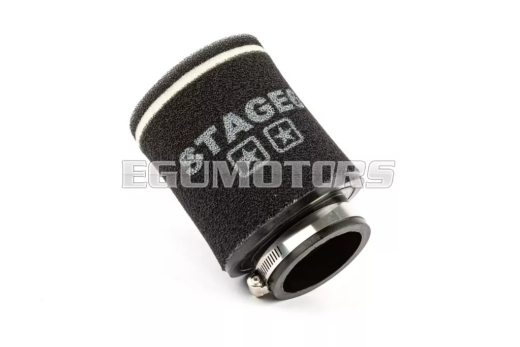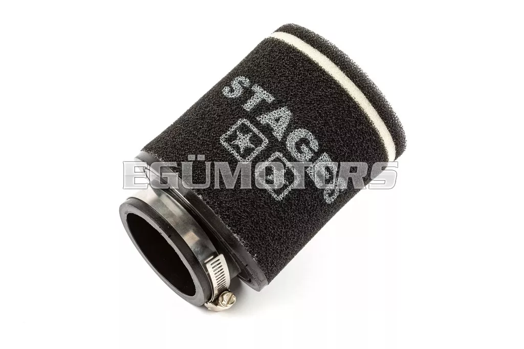 Stage6 dupla rétegű légszűrő, Fehér. A népszerű Stage6 Double Layer Racing légszűrő már kapható egy új változatban is. Az új, 70mm csatlakozási átmérőjű légszűrő minden PWK és VHST porlasztóra felrakható, amin a Stage6 MKII karburátor torkot használjuk .