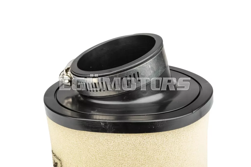 Szivaccsal borított, nagy levegő igényű, verseny szettekhez ajánlott sportlégszűrő. A kétrétegű szivacsnak köszönhetően jó szűrési képességgel rendelkezik, nagy felülete pedig nagyon nagy légáteresztő képességű. 6 féle csatlakozóval szállítjuk, hogy bármilyen robogó karbira felszerelhető legyen. Javasolt légszűrőolajjal kezelni! A kétrétegű szivacs miatt folyékony olajba mártandó.