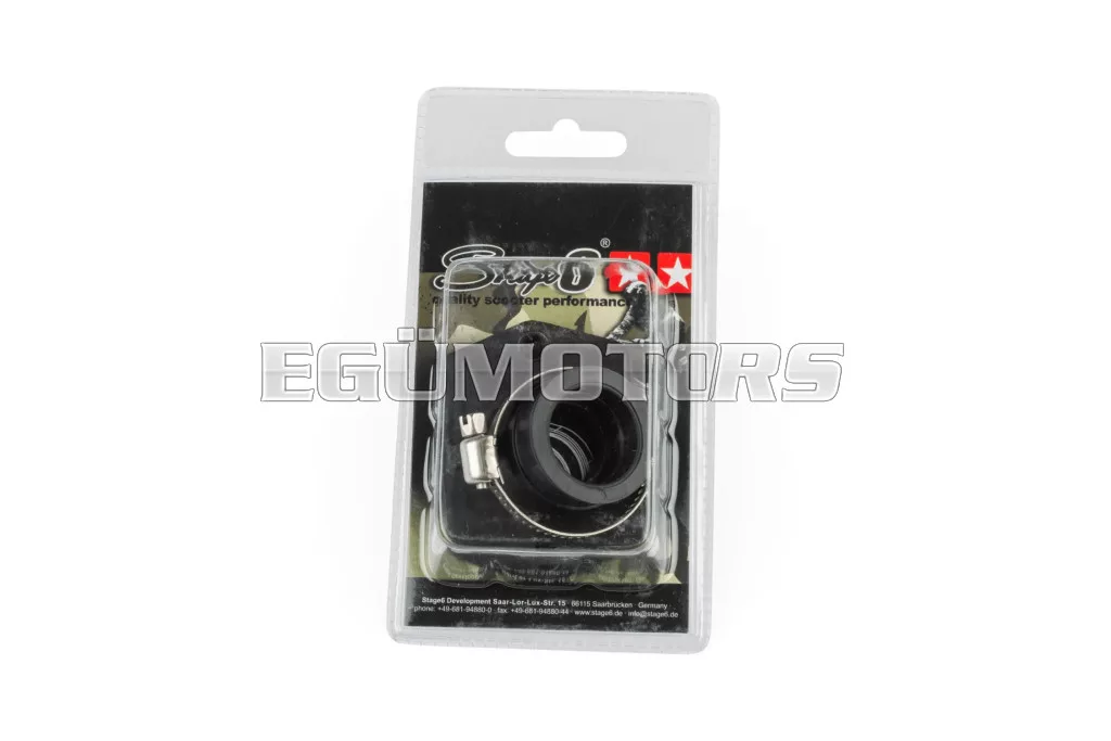 Stage6 rövid szívócsonk Piaggio blokkos robogókhoz. Anyaga a már jól ismert Viton, ami azért előnyös, mert ellenáll a benzinnél jóval erősebb anyagoknak is.