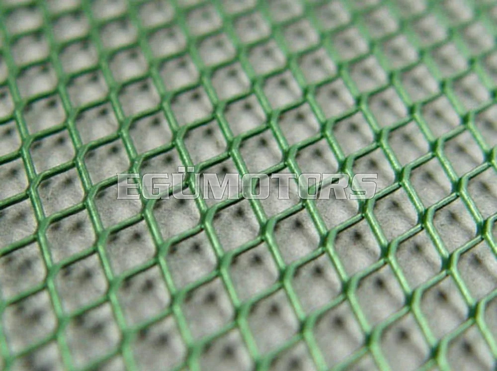 Eloxált alumínium fémrács, zöld eloxált színben.
